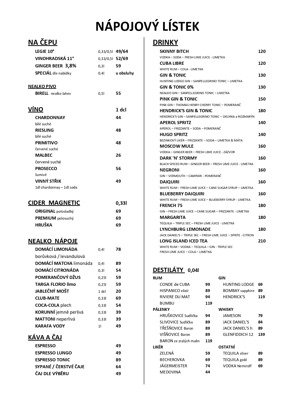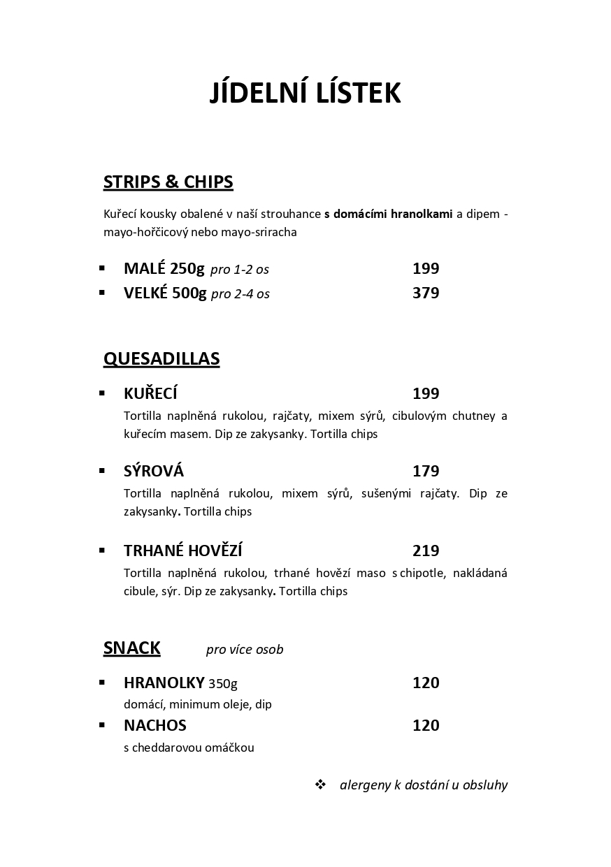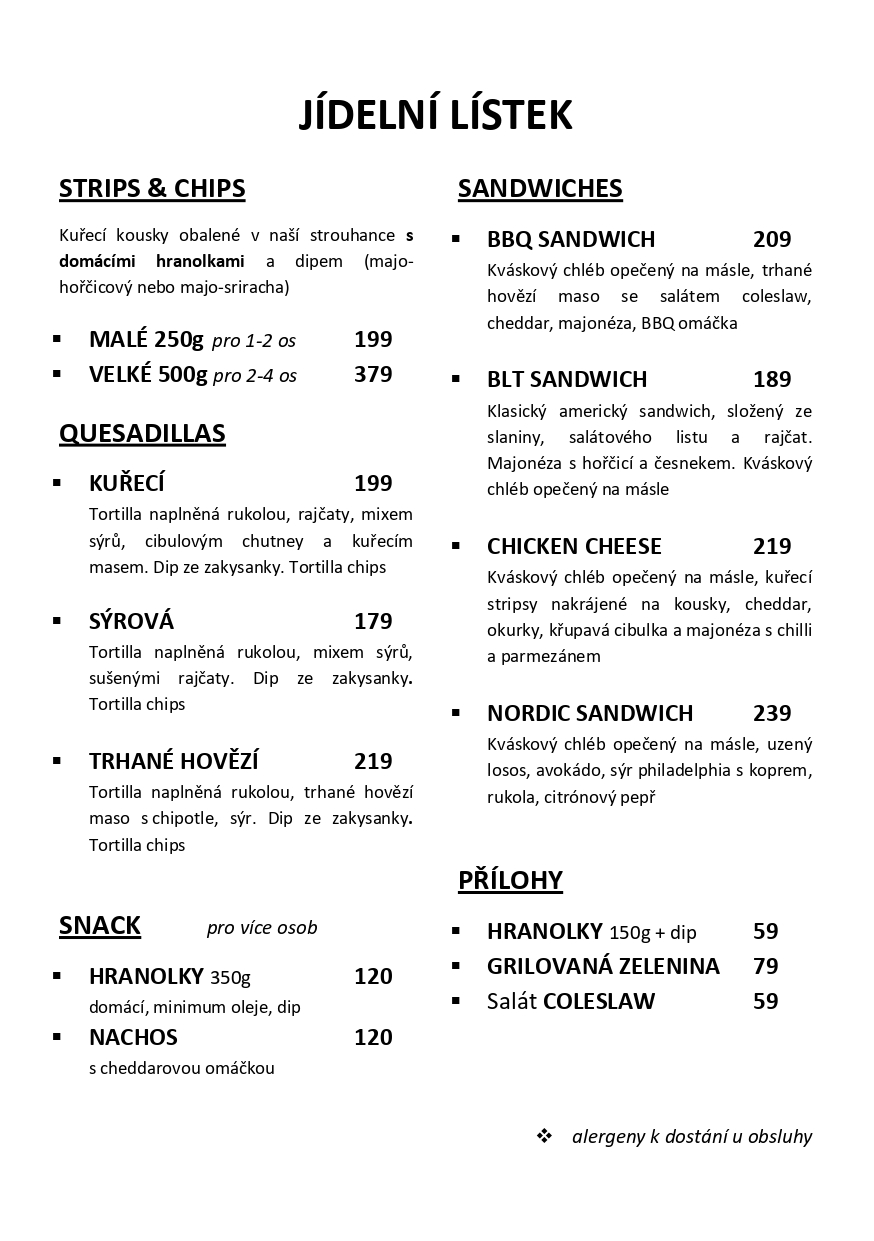 Jídelní lístek PONDĚLÍ a SOBOTA